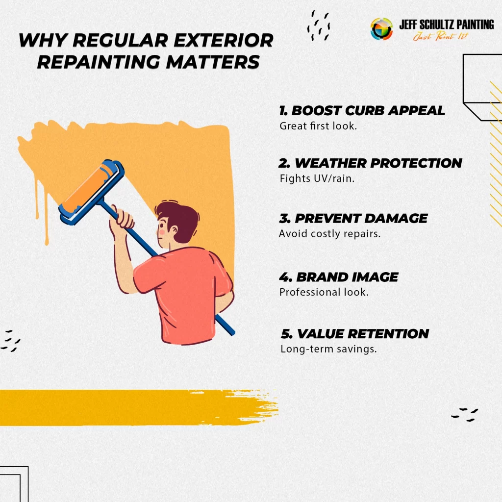 - Regular exterior repainting enhances first impressions, reflecting professionalism and attracting potential clients to your business.